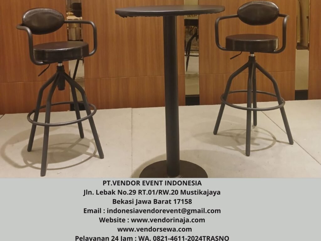 Rental Kursi Barstool senderan full hitam Jakarta. Apakah anda akan mengadakan acara?, membutuhkan produk alat pesta, juga mencari jasa yang aman dan amanah?. Tidak perlu bingung atau khawatir, jasa kami (PT VENDOR EVENT INDONESIA ) menyediakan dengan beberapa pilihan model, tentunya dapat disesuaikan dengan yang diinginkan.