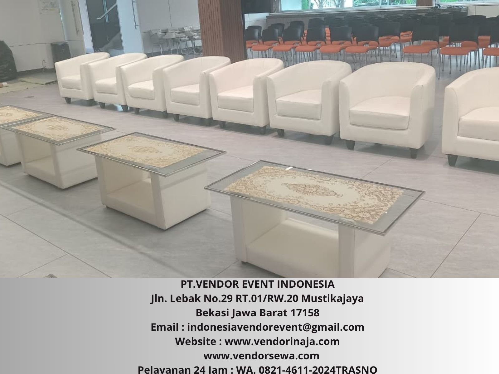 Sewa Sofa Oval Putih Area Jakarta Pusat. PT VENDOR EVENT INDONESIA merupakan layanan sewa yang berada didaerah bekasi. Jasa kami melayani anda yang akan mengadakan acara-acara, dan membutuhkan produk alat pesta.